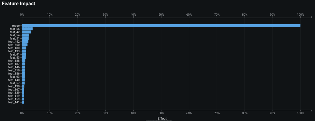 DataRobot’s Visual AI models in autopilot built a model with an improved 1 percent better performance without any additional parameter tuning. With a single change to enable Low Level Features in Advanced Tuning, the model accuracy increases by 2 percent from baseline.